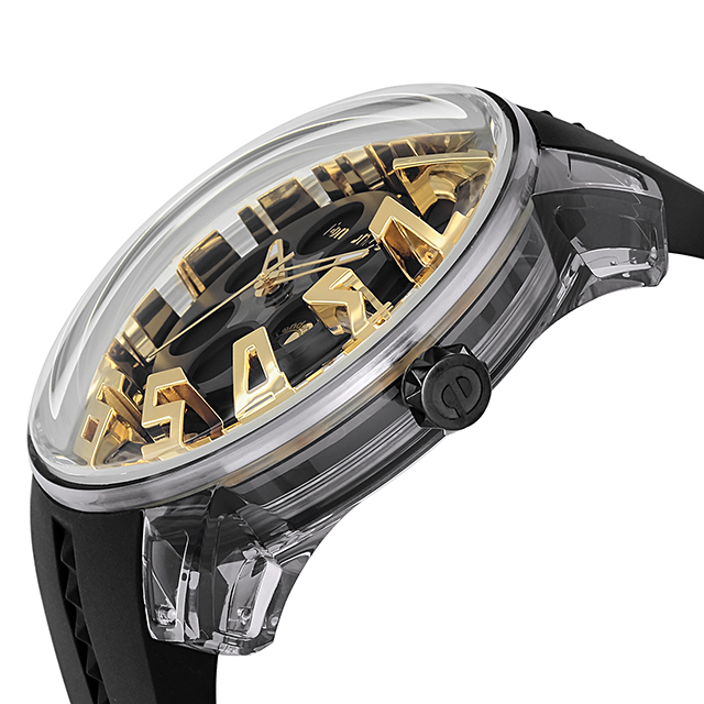 このドーム屋根の構造を厚みのあるミネラルガラスで再現。 また、回転式のダイヤルでドーム内部のスロープも再現しています。テンデンスの特徴でもある3Dインデックスも、ドームの形状に沿うように新しくデザインされています。
