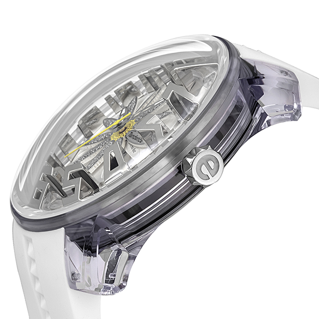 このドーム屋根の構造を厚みのあるミネラルガラスで再現。 また、回転式のダイヤルでドーム内部のスロープも再現しています。テンデンスの特徴でもある3Dインデックスも、ドームの形状に沿うように新しくデザインされています。
