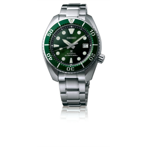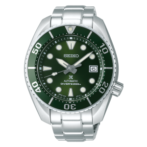 プロスペックス ダイバーの基本形です。長針と短針で形状の違う針、12時位置のみ形状が違うインデックス、マーカー付きのベゼル、4時位置のリューズ。すべてが備わったモデルです。