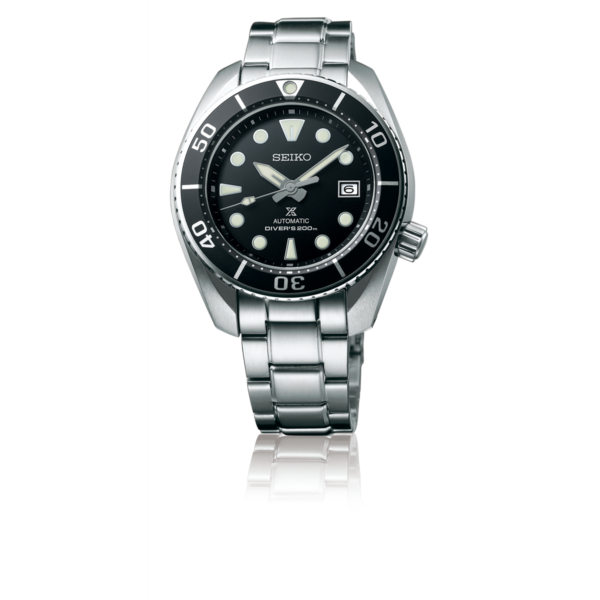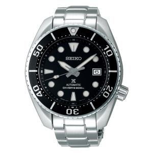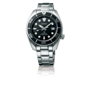プロスペックス ダイバーの基本形です。長針と短針で形状の違う針、12時位置のみ形状が違うインデックス、マーカー付きのベゼル、4時位置のリューズ。すべてが備わったモデルです。