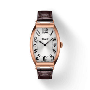 アール・デコ全盛の優雅な時代に生まれた美しい樽型のトノーシェイプ、ダイアルには当時ティソのみに供給されたチャーミングがアラビア数字を配置。