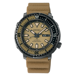 ストリートシーンを彩るファッション性の高いカルチャーにインスパイアされた「Street Series」は、2020年は世界のファッションシーンにおいて1つのジャンルを形成する「サファリルック」に注目。高い信頼性とユニークなルックスからセイコーダイバーズの代名詞となった外胴プロテクターつきモデルがベースとし、「TOKYO」という都市がもつスタイルとMIXした「Urban Safari」をコンセプトに、個性的なカラーリングのコンパクトサイズでデイリーユースにマッチする3針カレンダーモデルを形にしました。