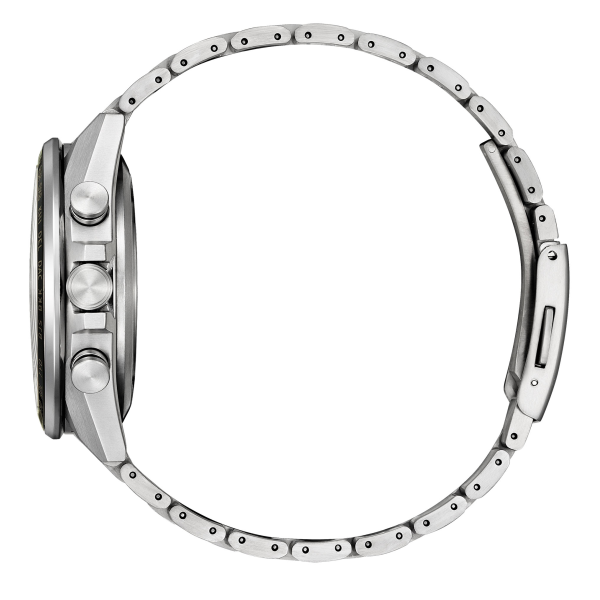 3時と9時位置のサブダイヤルに金属リングを配置、カット面の多いインデックスも採用することで、立体感と存在感のあるダイアルデザインに。また都市表記をケース外周に表記することでスポーティーな印象を持たせつつ、ミラー仕上げによりエレガントな表情をプラスしています。