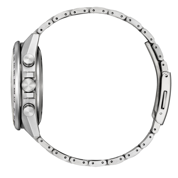3時と9時位置のサブダイヤルに金属リングを配置、カット面の多いインデックスも採用することで、立体感と存在感のあるダイアルデザインに。また都市表記をケース外周に表記することでスポーティーな印象を持たせつつ、ミラー仕上げによりエレガントな表情をプラスしています。