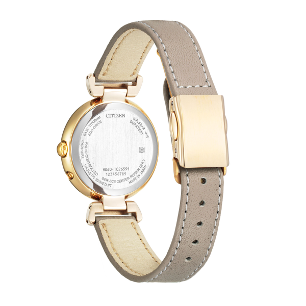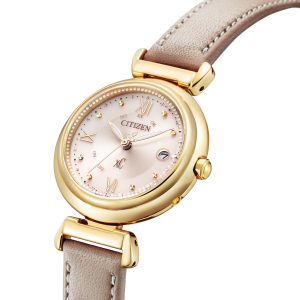 ダイアルにはカットパーツと柔らかく軽やかなフォントがさりげなくレイアウトされ、優美な印象を演出します。