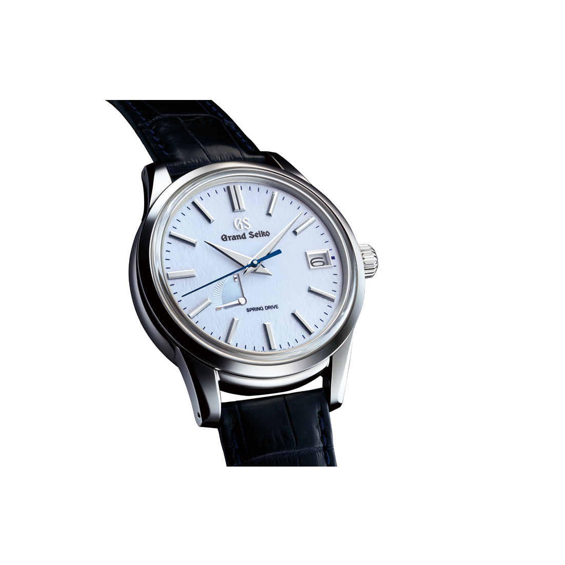 機械式輪列と電子回路の複合キャリバー「スプリングドライブ」搭載モデル。ダイヤルの上を滑るように動く秒針は、