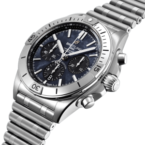 42mmにサイズダウンするのと共に、アイコニックなライダータブと独特のルーローブレスレットが復活。裏ブタはシースルーバックとなっており、自社製クロノグラフキャリバー「B01」の鼓動を感じつつクロノグラフの精密な動きを楽しむことができます。