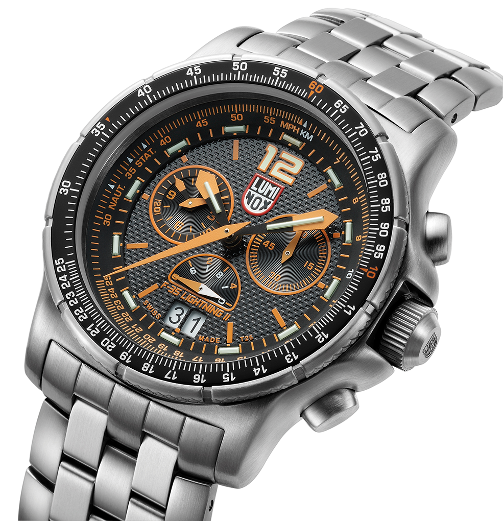 軍用機史上最も優れた戦闘機と言われる『F-35 Lightning?』。多くの名機を生産しているロッキード・マーティン社と米空軍が公認したパイロットウォッチとして誕生。最新鋭ステルス機のF-35Lightning?をモチーフに、流線型の機体やジェットエンジンを彷彿させるリューズなど、拘りのデザイン。