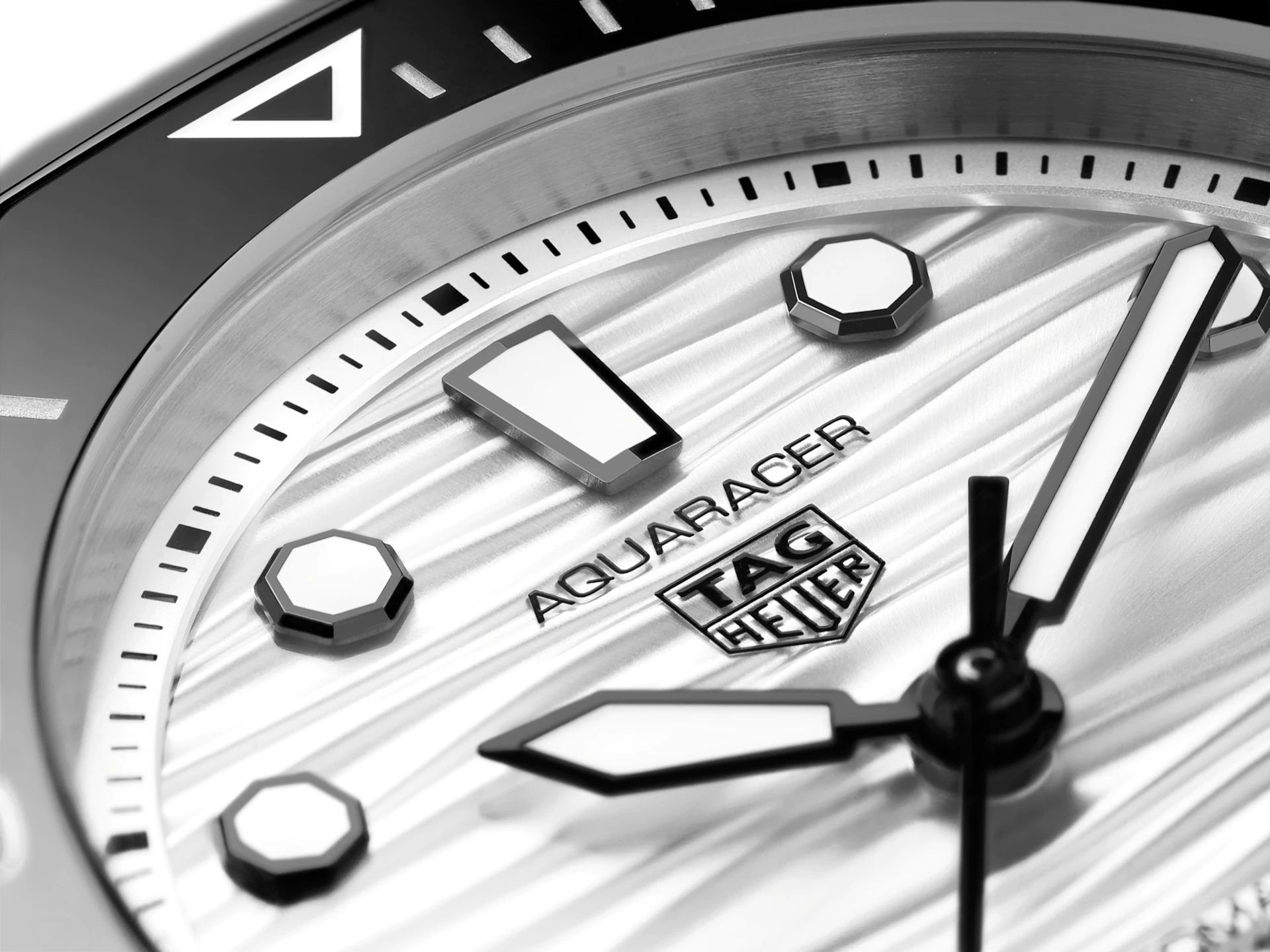 36?ケースのパーフェクトなダイビングウォッチ。シルバーラッカー仕上げのダイヤルを備えたこのスペシャル エディションのタグ・ホイヤー アクアレーサーは、あらゆる挑戦に対応するモデルです。大胆なブラックゴールドプレートの針とマーカーにはホワイトのスーパールミノバ®をコーティング。昼夜を問わず絶対的な視認性を約束します。