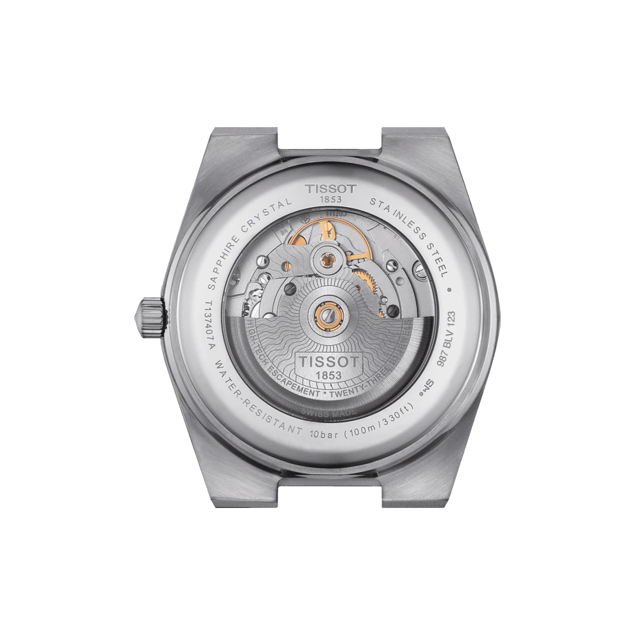 「PR」は""Precise and Robust(高精度かつ堅牢)”を意味し、「X」は""10気圧防水""をローマ数字で表現したTissot PRX。