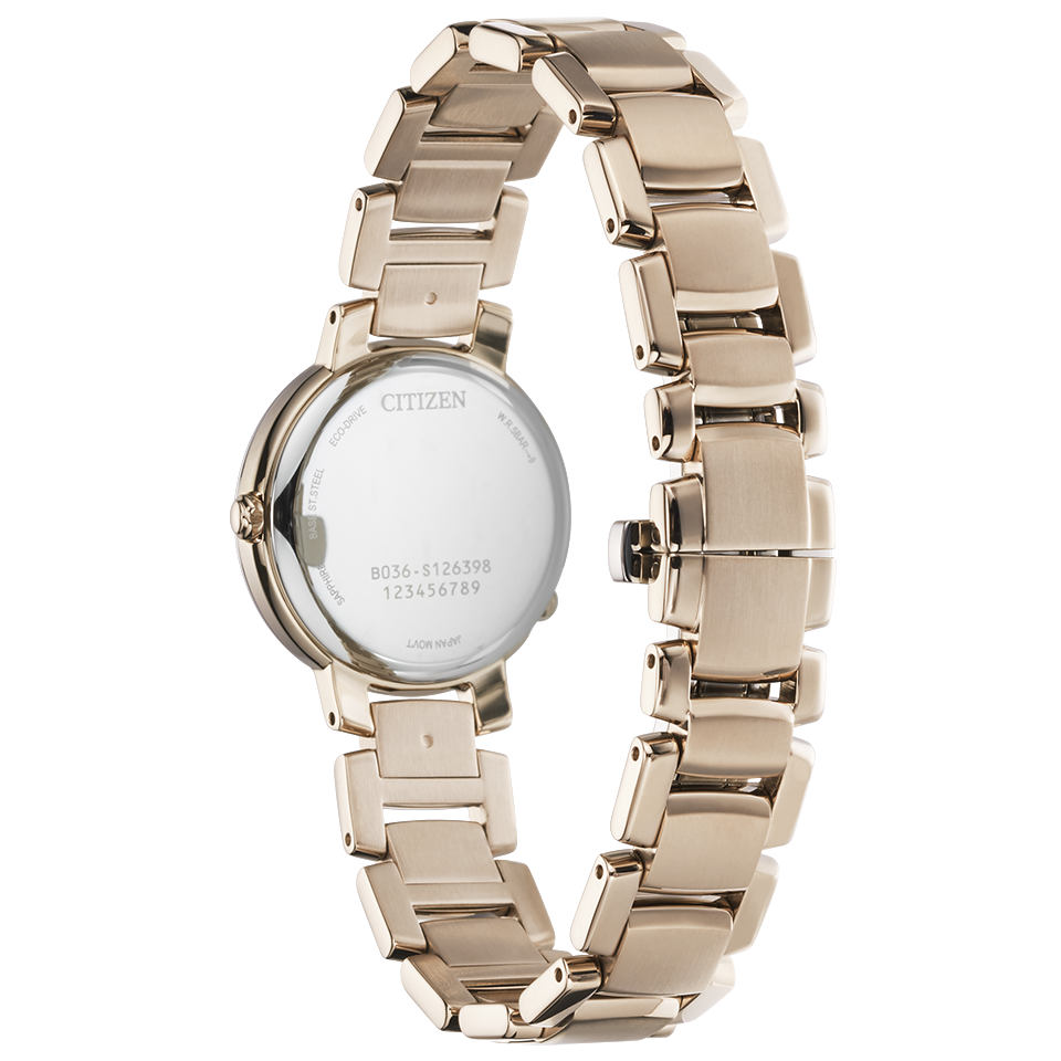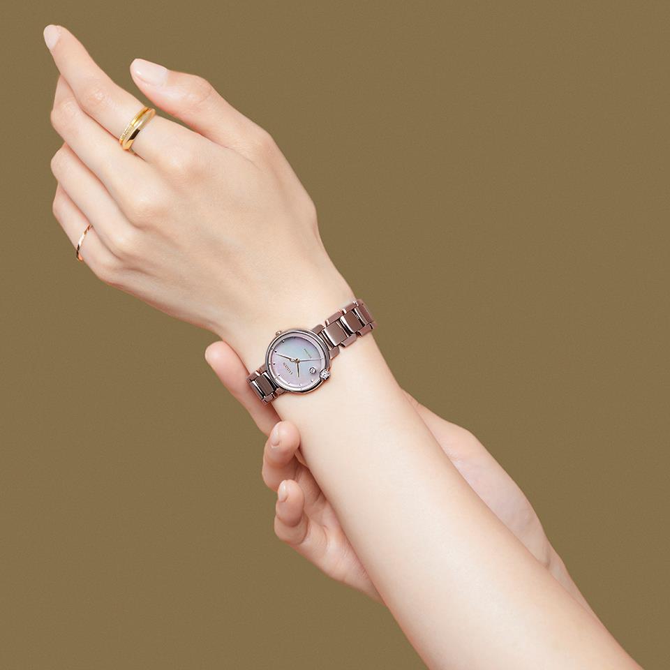 “STELLA〜星〜”への憧れを表現したジュエリー感覚のフェミニンなウオッチです。ケースとガラスに、お互い惹かれ合うように絶妙なバランスでダイヤモンドをセッティング。シンプルでありながらも、新鮮で洗練された存在感を放ちます。零れるような大粒のダイヤモンドをベゼルリングにあしらうことで、エンゲージリングを思わせるデザインとなっています。