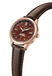 「成長」を象徴するモチーフであると言われる太陽と月が時間の経過とともに移動し変化する表情を楽しむことができるサン&ムーン機能と、凛としたケースデザインが特徴です。時間が前に進むことを楽しみ、未来へ向かって歩いてほしい、という想いをこめています。ケースの側面には、大地の重なりをイメージしてミルグレインリングをセッティング。伸びやかですっきりとしたインデックスとカットパーツが繊細な美しさを演出。TYOの位置には、羅針盤マークをあしらいました。革バンドには、環境に配慮したサステナブルな素材「アップルレザー」を採用。柔らかく腕なじみの良い着け心地です。