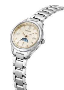 「成長」を象徴するモチーフであると言われる太陽と月が時間の経過とともに移動し変化する表情を楽しむことができるサン&ムーン機能と、凛としたケースデザインが特徴です。時間が前に進むことを楽しみ、未来へ向かって歩いてほしい、という想いをこめています。ケースの側面には、大地の重なりをイメージしてミルグレインリングをセッティング。伸びやかですっきりとしたインデックスとカットパーツが繊細な美しさを演出。TYOの位置には、羅針盤マークをあしらいました。
