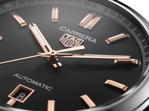 ブラックのダイヤルに5Nローズゴールドのハイライトを備えたタグ・ホイヤー カレラ。都会的な人々に捧げるウォッチです。目を惹く美しさの中に感じるのは、強い信念。自動巻キャリバーと技術的構造により、野心的なまでの力強さを放ちます。