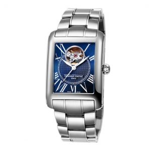 文字盤の小窓から機械式時計のテンプの動きを見せる”ハートビート”搭載のクラシックな角型”カレ”コレクション。緩やかにカーブするケースは腕にフィットし、大ぶりのローマンインデックス、クル・ド・パリ装飾、ミニッツトレイル、ブレゲ針とそしてオニオンリューズ。クラシックな要素があふれる、どのシーンでも自信を持って身につけていただける一本です。