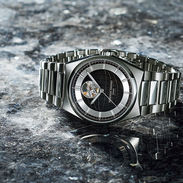 ハイライフ ハートビートは、ダイヤルに地球モチーフの装飾を施しつつ、12時位置にブランドのアイコンであるハートビートを配しており、その部分から時計の鼓動を覗くことができます。また、時分針とインデックスには夜光塗料が施されており、シンプルなミニマリズムに貫かれたデザインは、変わらぬモダニティとオリジナリティをたたえています。また、日本限定のツートンカラーのダイヤルが、爽やかなエッセンスを添えています。