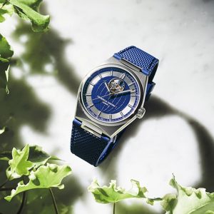 ハイライフ ハートビートは、ダイヤルに地球モチーフの装飾を施しつつ、12時位置にブランドのアイコンであるハートビートを配しており、その部分から時計の鼓動を覗くことができます。また、時分針とインデックスには夜光塗料が施されており、シンプルなミニマリズムに貫かれたデザインは、変わらぬモダニティとオリジナリティをたたえています。また、日本限定のツートンカラーのダイヤルが、爽やかなエッセンスを添えています。