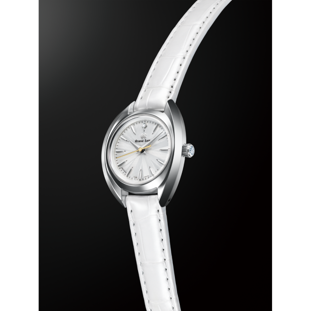 空気の澄んだ冬至のころに現れる「風花(かざはな)」。はらはらと雪のかけらが風に舞い、まるで白い花びらが踊る情景を切り取ったような、はかなさと凛とした表情を併せ持つモデルです。 りゅうずには大きめのダイヤモンドを配し、控えめな輝きを放ちます。 また、熟練した職人による匠の技で磨き上げた歪みのない鏡面とシャープなラインが、りゅうずのダイヤモンドの輝きと調和します。 ホワイトダイヤルとホワイトのクロコダイルストラップが、腕元を清らかに凛と彩ります。