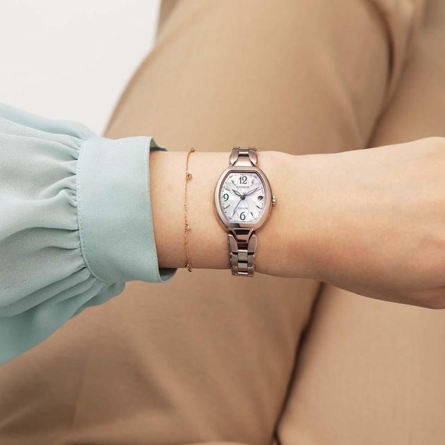 優雅なデザインが人気のモデルから、ハッピーフライト機能を搭載した新モデルが登場です。 美しい白蝶貝文字板に、優雅に咲く花の重なりをエッチングで表現しました。ラメが輝く上品でエレガントなモデルです。文字板のインデックスも12、6、9時位置にアラビア数字を採用しました。ケースとバンドにはデュラテクトサクラピンクを施し、腕元を明るく華やかに彩ります。
