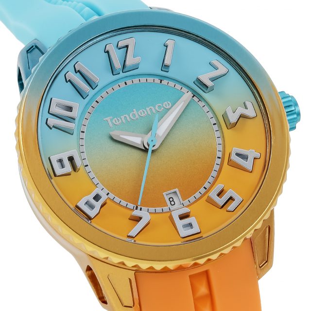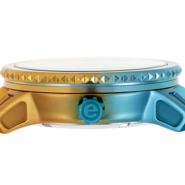 地球上に溢れている、美しい自然の色彩。 もっと身近に取り入れることで、日常に大自然を感じ、慌ただしく過ぎていく日々に安らぎを与えたい。そんな想いで、「De’Color」誕生しました。 オーシャン(海)、デザート(砂漠)、オーロラ、サンセット(夕日)、スカイ(空)の5つのカラーリングは いつの時代も人々を魅了する自然の色彩です。 このカラーリングを時計にデザインする為、ケースには艶やかな「アルミニウム」を使用し、ダイヤルだけでなく、ケース、べセル、プッシュボタンに至るまで、オールグラデーションにこだわりました。 ケースやベゼル部分は、特殊な加工技術を使いコーティング。全て手作業で行っています。 ストラップもグラデーションに合わせたカラーになっております。