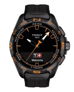 TISSOT T-TOUCH CONNECT SOLAR [ティソ T-タッチ コネクトソーラー] は1999年を皮切りに次々と登場したタッチパネル式ウォッチ T-タッチ コレクションの最新モデル。2004年に発表したスマートフォン連動機能搭載のHigh-T [ハイ-T] で得たノウハウを注ぎ込み、スマートフォン連動を実現。ディスプレイの日本語表示も追加しました。