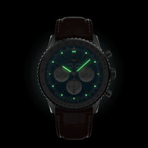 1952年に発表された、航空時計の象徴ともいえるナビタイマー。世界で初めて航空計算尺が付いたクロノグラフとして、AOPA(国際オーナーパイロット協会)の公式時計に認定された不朽の名作の誕生から70年となる2022年にリニューアルされました。 公式時計として初期のナビタイマーに記載されていた盾+翼のクラシックロゴが施されました。また外周の回転計算尺のの設置傾斜が緩やかになり、3つのインダイアルに装飾が施されました。ブライトリングによる完全自社開発自社製造による「キャリバー01」を搭載し、日付も6時位置に移動したことで、見やすく・付けやすい纏まったデザインとなっています。