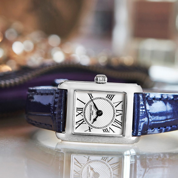 フレデリック・コンスタントを代表するレディースコレクション。フランス語で「スクエア」を意味するカレ。1920年代後半に時代を博したエレガントでファッショナブルな女性からインスピレーションを受けたデザインは、ローマ数字のインデックスや、ギョーシェ装飾を施したダイヤルといった細部にまでこだわり、クラシックでありながら、スタイリッシュな時計です。