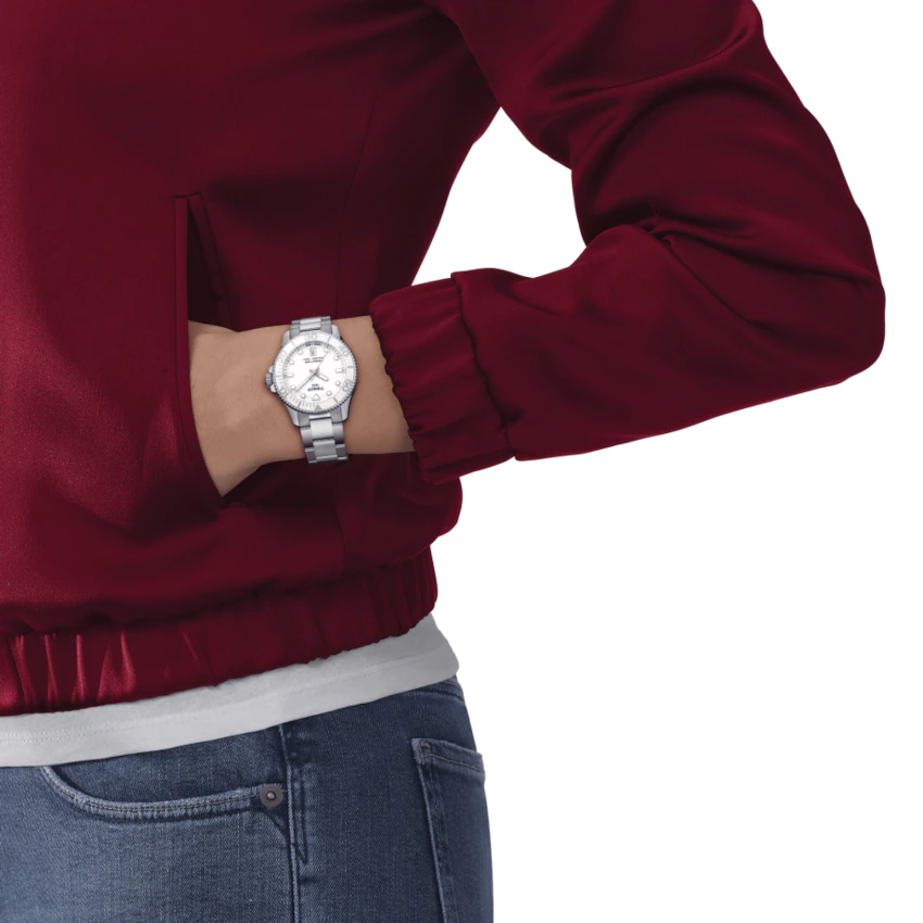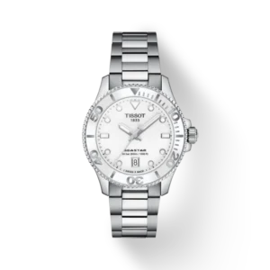 36mmのTISSOT シースター 1000は、存在感のある時計。都会のジャングルを平然と歩き、海の底に潜っても大丈夫な強さを備えています。