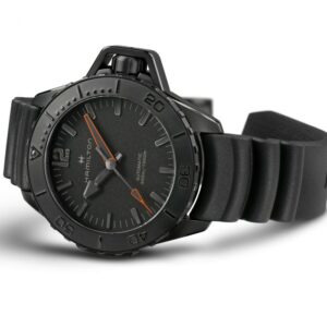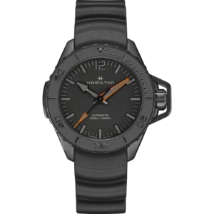 大胆で新しいデザインを携えた「カーキ ネイビー オープンウォーター オート」は、ハミルトンで最も技術的に 優れたモデルです。精度、視認性、耐久性を追求して設計されたこの精密機器は、ユニークなフォルムのクラウンプロテクターと、波の形状のラバーストラップとともに、海の計り知れないパワーを腕元にもたらします。