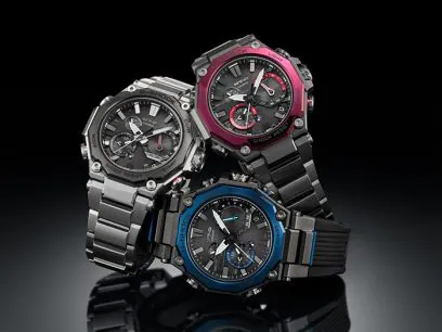 更にメタルフレームとベゼルを別体にしたことで、インパクトのあるカラーリングも実現。外装のメタルパーツにはミラー仕上げを施し、サイドボタンもガードレス構造としています。