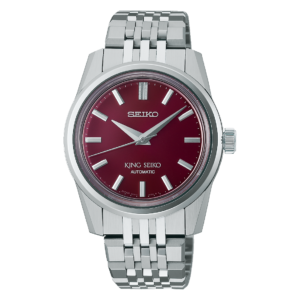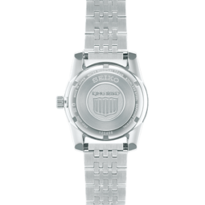 キングセイコーの「盾」をモチーフとしたブランドマークも、時計と共に復活を果たしました。当時のアイコニックなシルエットを継承しつつも、よりフラットに、モダンに刷新され、りゅうずと裏ぶたに刻まれています。