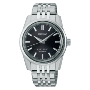 キングセイコーの「盾」をモチーフとしたブランドマークも、時計と共に復活を果たしました。当時のアイコニックなシルエットを継承しつつも、よりフラットに、モダンに刷新され、りゅうずと裏ぶたに刻まれています。