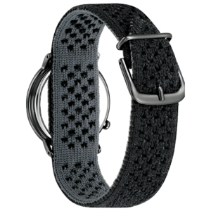 自然界を構成する四大元素~地・水・火・風~、そこに命を吹き込む鼓動をテーマにした『Ambiluna Collection』ニットバンドは通気性が良く汗がたまりにくい編み方を採用。軽さと伸縮性も追求し、心地良さを実現。ECOPET®(エコペット)糸入り素材を使い、裁断時のカットロスが出ないホールガーメント®で編んでいて、手洗いも可能なので長く使えます。砂紋のような模様が美しいステンレスメッシュの替えバンド付き。
