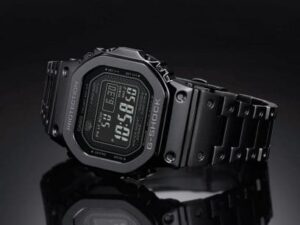 1983年に誕生したG-SHOCK初号機DW-5000C。その象徴であるスクエアデザインはそのままにフルメタル化し、スマートフォンリンクをはじめとした先進機能を搭載したGMW-B5000シリーズです。