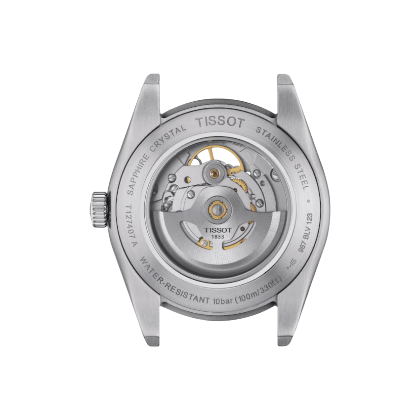 この目を引くデザインは、スイスの時計製造の伝統の象徴であり、その下にあるムーブメントの美しさによって、ティソの伝統を視覚的に強く印象づけるものとなっています。