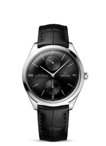 この40mmのポリッシュ仕上げのステンレススティール製ケースには、ブラックレザーストラップが付属。同じくブラックのドーム型ダイアルは、18Kホワイト ゴールド製の針とインデックス、そして6時位置にスモールセコンド、12時位置にパワーリザーブ表示を備えています。