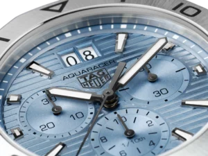 空や氷を連想させるライトブルーのダイアルが、このステンレススティール製タグ・ホイヤー・アクアレーサーの存在を際立たせます。どんな状況でもアウトドアに最適な強度を発揮する、過酷な状況に耐えるよう作られた信頼性の高いウォッチです。