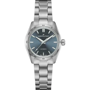 機能性とスタイルの両方を求める方にぴったりな「ジャズマスター パフォーマー」は、パワフルでスポーツシックな外観が特徴です。標準持続時間80時間のH-10自動巻きムーブメントが駆動する「ジャズマスター パフォーマー オート」は、34mmのステンレススチール製ケースに、シンプルなライトブルーのダイヤルと、洗練されたステンレススチール製ブレスレットが組み合わされています。