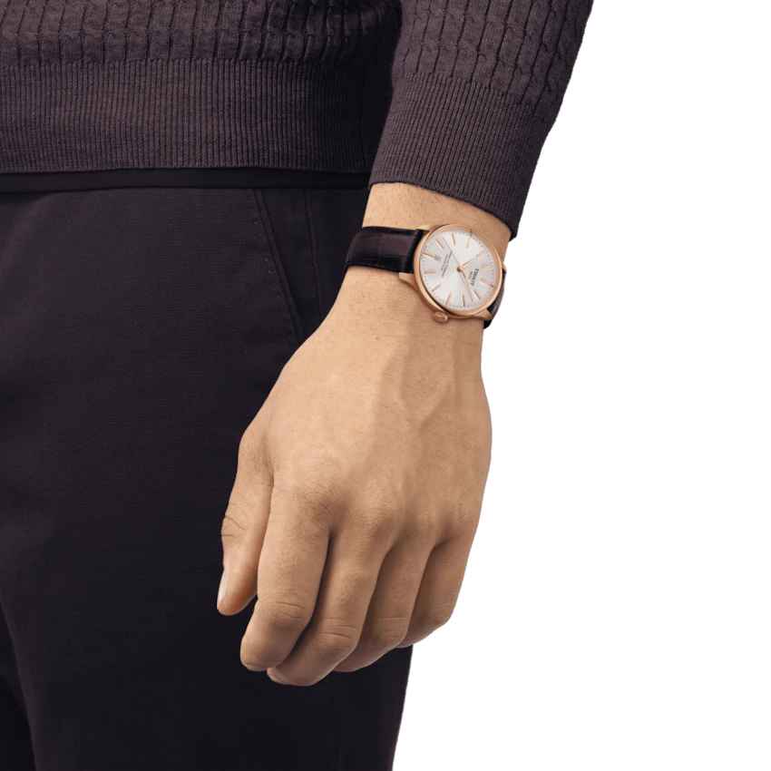 ティソの故郷であるスイスの山中にある通りにちなんで名付けられたこの時計は、丸みを帯びたクラシックな機械式。時代を超えたティソのアイコンです。このモデルでは緩やかなドーム型のサファイアクリスタルを採用し、ソフトサンレイのダイヤルにシンプルでエレガントなバトンインデックスを配しています。そしてその下には80時間のパワーリザーブと高度な耐磁性を備えた最先端の自動巻きムーブメント、ニヴァクロン パワーマティック80が搭載されています。いつの時もつけていたい時計です。