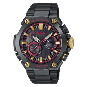 G-SHOCK最上級ラインの「MR-G」シリーズ。 MRG-B2000は、構造、機能、素材、仕上げなど細部までこだわり、日本古来より受け継がれてきた強さや美意識を継承するMR-Gです。文字板の外周部には扇や屏風をイメージしたカットを施すことで、シンプルでありながら華やかなテクスチャーを入れています。また、インデックスには、山形カシオのナノ加工技術ならではの美しいエッジや曲面への挽き目加工を施し、日本刀の反りを表現しています。 ?