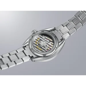 サファイアガラスのシースルーの裏ぶたからは、熟練の職人によって組み立てられた美しいムーブメントの動きを堪能することができます。