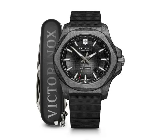 信頼の時計製造技術に最先端のテクノロジーが加わった I.N.O.X. Carbon Mechanical。ビクトリノックス・ウォッチとして、当然ながらスイスの技術と品質に裏打ちされていますが、そのデザインは伝統の枠に捉われません。デザイントレンドに対応しつつ軽量性も抜群の炭素複合素材を採用することで、過酷な状況にも耐える究極の強靭さと耐久性を実現しました。スーパールミノバ加工を施した針とインデックスは視認性抜群、さらにサファイアクリスタルの採用で耐傷性にも優れているため安心して重要なタスクに集中できます。最大限の性能と最先端のスタイルを兼ね備えた、ハイスペックなウォッチをぜひお手元に。スタイリッシュなマットブラックハンドルのスパルタンPSナイフもセットで付属するので、どんな冒険にも備えは万全です。