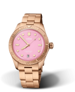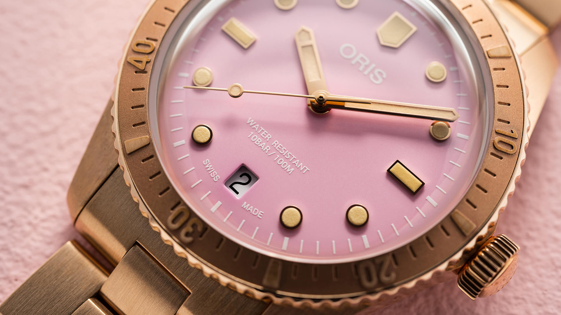 新しいスタート。春には新たな希望が生まれ、長くて暗いトンネルの終わりに光が差し込みます(今年はこれまで以上に)。新ダイバーズ65「コットンキャンディ」は、笑顔をもたらすというシンプルな使命を帯びています。オリスがヘルシュタイン エディション2020で採用したオールブロンズ製ケース・ベゼル・リューズ・ブレスレットに、スカイブルー、ワイルドグリーン、リップスティックピンクのコットンカラーを合わせました。38mm径ケースはユニセックス仕様で、ブロンズは自然で魅力的な経年変化を経て独自のストーリーを生み出します。各モデルにはスイス製自動巻きムーブメントが搭載され、ドーム型サファイアクリスタル、10気圧(100m)防水、針とアプライドインデックスには鮮やかなスーパールミノバ®が使用されるなど、「ダイバーズ65」コレクションの代名詞ともいえる品質基準を満たしています。