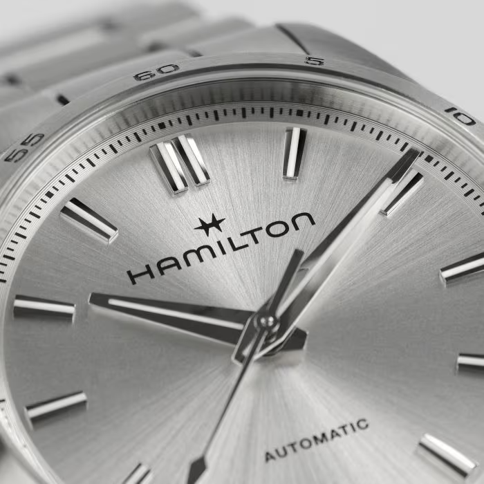 機能性とスタイルの両方を求める方にぴったりな「ジャズマスター パフォーマー」コレクションは、パワフルでスポーツシックな外観が特徴です。標準持続時間80時間を備えたH-10自動巻きムーブメントを搭載した「ジャズマスター パフォーマー オート」は、34mmのステンレススチール製ケースに、モダンなシルバーダイヤル、ニッケルインデックス、そして洗練されたステンレススチール製ブレスレットが組み合わされています。