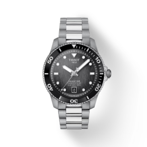 ティソのシースター 1000 40mmに新たに加わったこのエディションは、パワーマティック80を核にした堅牢な40mmケースを採用しています。ケース側面に加えられたわずかなくぼみと、縦方向のヘアライン加工が施されたダイアルは、よりコンパクトで洗練された外観を実現。黒色のグラデーションがかかった外観が全体の立体感と高級感を高めています。スポーティでありながら力強い個性を演出するこのタイムピースは、300メートル(1000フィート)までの防水性能と、スーパールミノヴァ®コーティングが施された針とインデックスにより、暗い場所でも視認性が高く、あらゆるアクティビティをサポートします。ステンレススチール製の逆回転防止ベゼルには、カラープリントが施されたミネラルガラスリングを備え、5つの異なるモデルがそれぞれ独自の美しさと個性を放ちます。このコレクションは、そのスポーティかつ大胆な魅力を保ちつつ、各バリエーションで唯一無二の美を実現しています