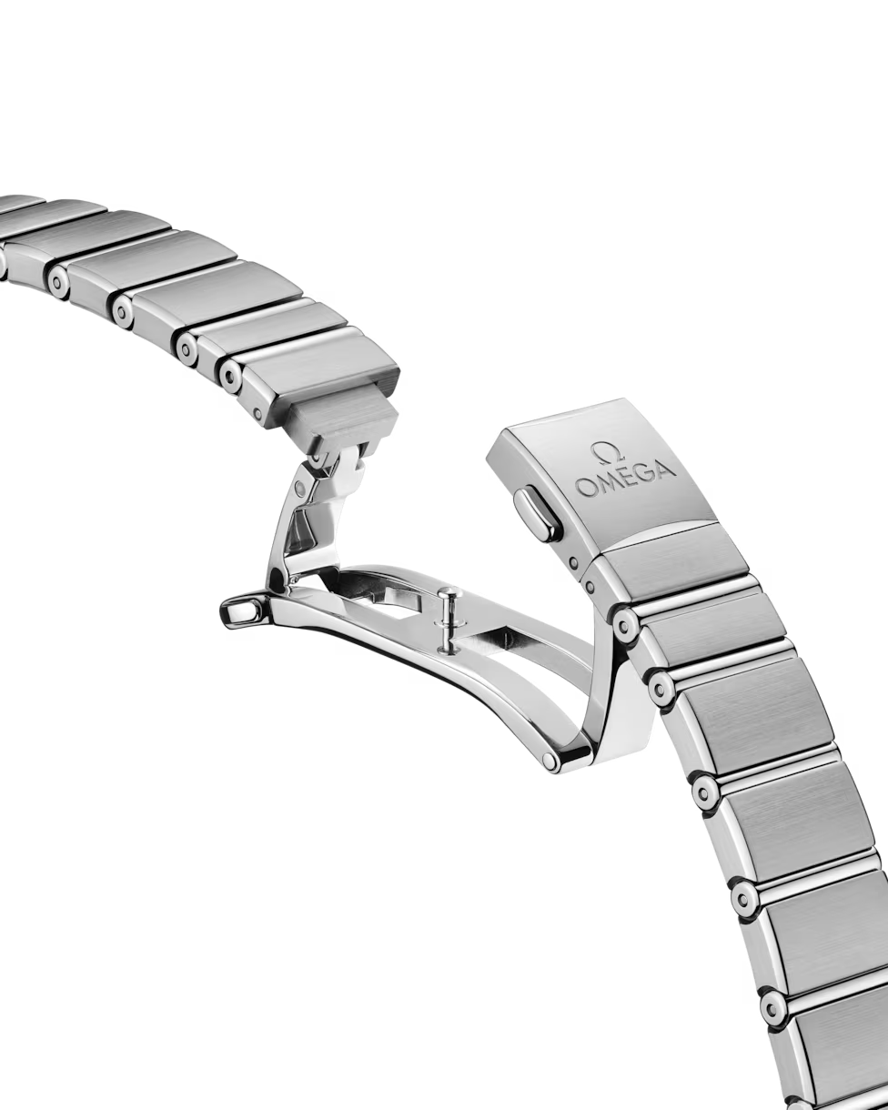 ステンレススティール製のケースとリンクブレスレットを備え、ポリッシュ仕上げの爪、ハーフムーンファセット、ダイヤモンドがパヴェセッティングされたベゼルなど、「コンステレーション」のシグネチャーである特徴を継承しています。